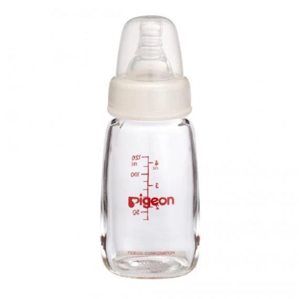 - Bình sữa thủy tinh Pigeon cổ hẹp 120ml có núm ty bằng silicon và mềm mại tạo cho bé cảm giác thoải mái khi bú.