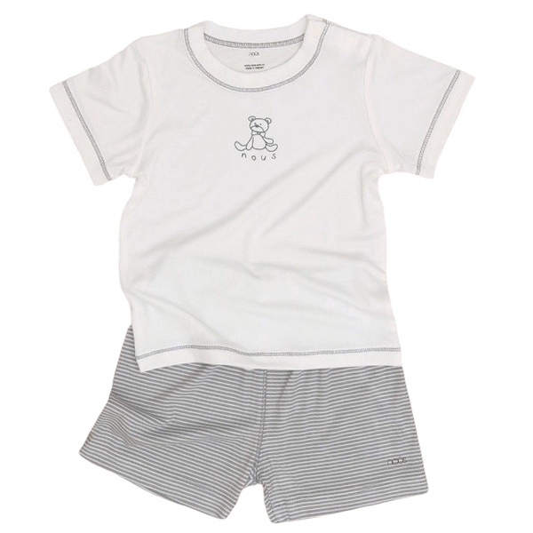 Bộ cài vai Nous cộc kẻ ghi trắng hình gấu 12M