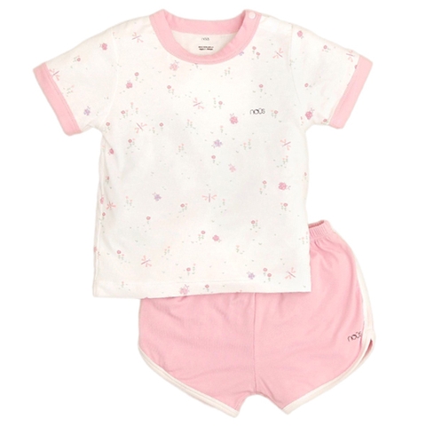 Bộ Nous 18-24M cài vai cộc trắng hồng hình vừơn hoa