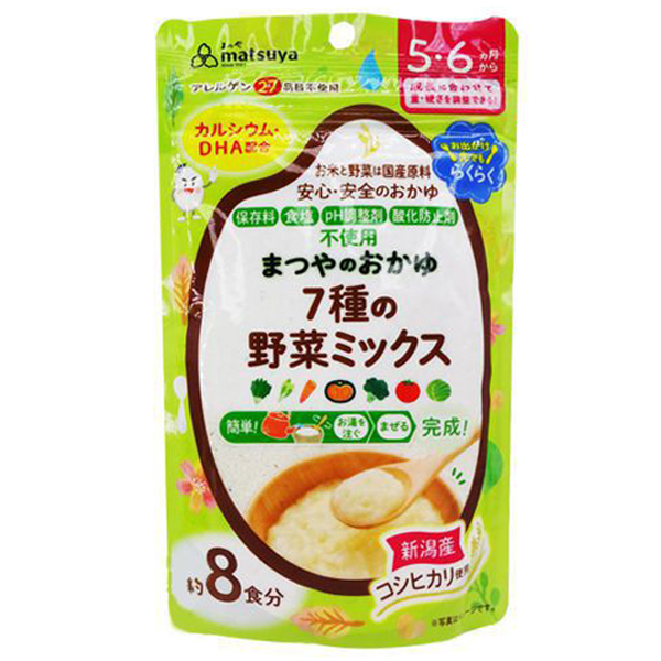 Bột cháo ăn dặm Matsuya 7 loại rau củ cho bé từ 5 tháng tuổi 42g có xuất xứ từ Nhật Bản. Với thành phần từ các loại rau củ tự nhiên có trong bột cháo ăn dặm Matsuya, sản phẩm cung cấp nhiều canxi và chất xơ, giúp bé rất dễ hấp thu và tốt cho hệ tiêu hóa, thích hợp cho giai đoạn ăn dặm.
