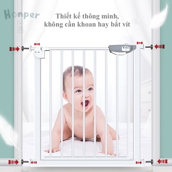 - Chiều rộng cần chắn kích thước từ 74cm đến 85cm, nếu kích thước cần chắn rộng hơn, ba mẹ hoàn toàn có thể sử dụng thêm mối nối Honper.