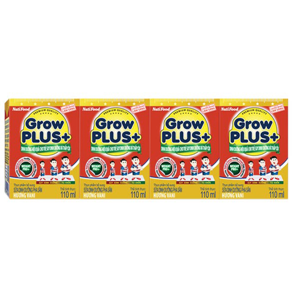 Sữa pha sẵn GrowPlus+ 110ml (hộp 4 lốc) được sản xuất dựa trên công thức độc quyền FDI của viện nghiên cứu dinh dưỡng Nutifood Thụy Điển. Với bộ đôi dưỡng chất HMO và FOS tạo nền tảng vững chắc cho bé đề kháng khỏe, tiêu hóa tốt. Sản phẩm giúp bé tăng cân, tăng chiều cao, cải thiện tình trạng biếng ăn và giảm bệnh vặt.